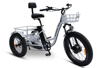In short: Electric Tricycles are electric bikes, but safer. Their back two wheels add an extra layer of sturdiness, while their motors help folks with limited mobility.