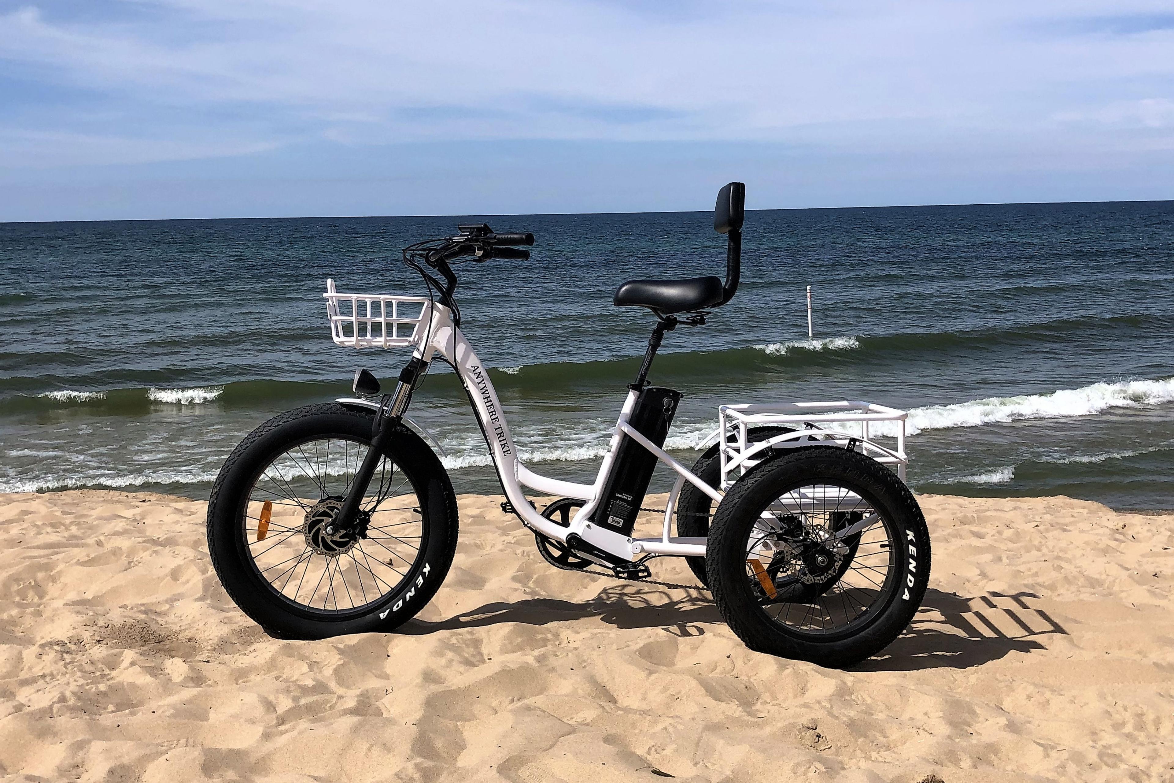 No matter what it is you like to do, using a tricycle could help assist you in doing it. Check out the electric tricycle taking a ride down at the beach.